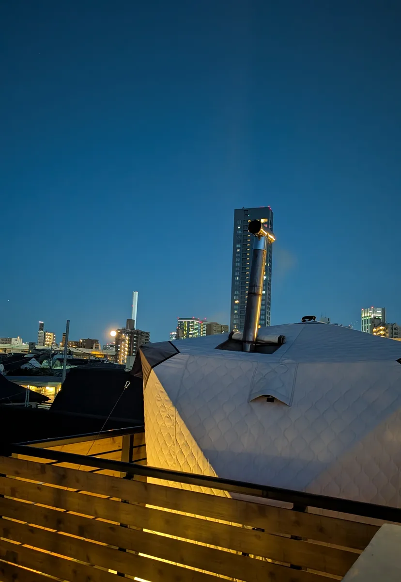 プライベートなテントサウナ空間。